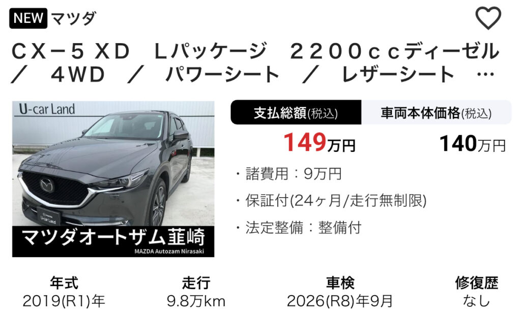 - 修復歴なし、できればディーラー整備車がおすすめ