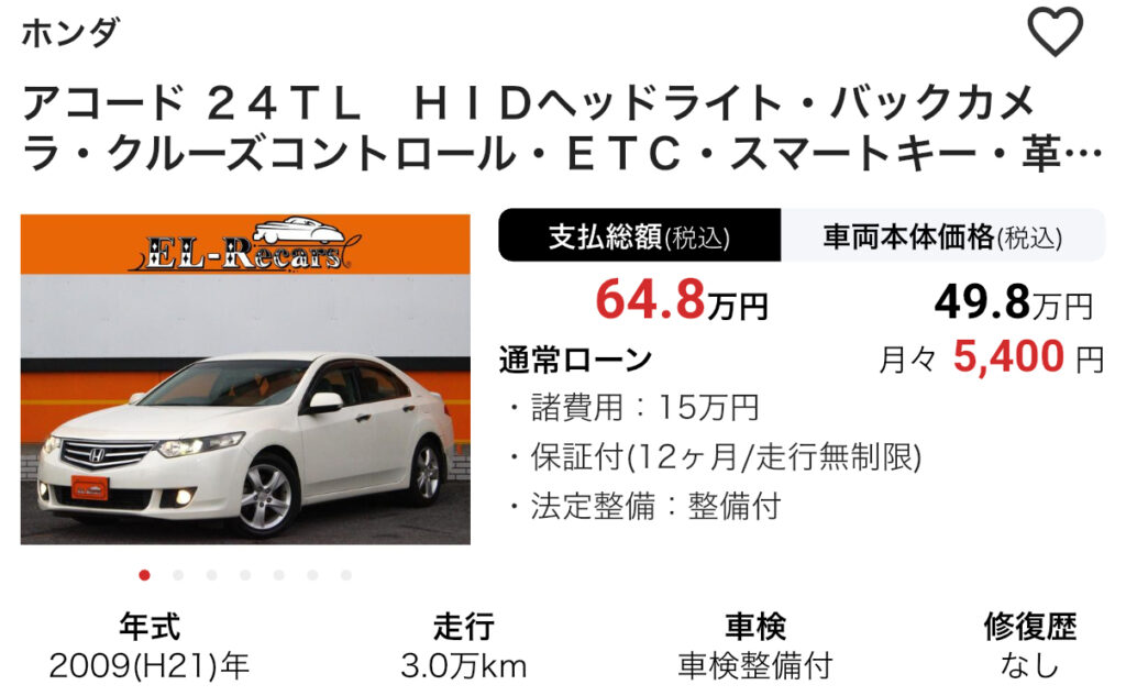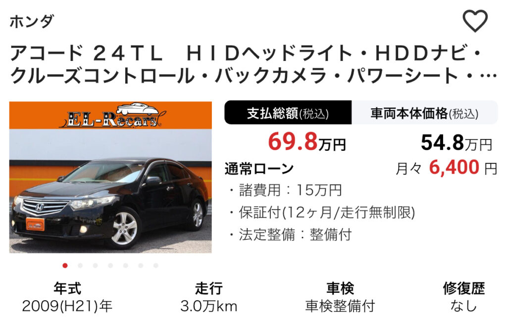同価格帯の中古車と比べても優秀と言えます。