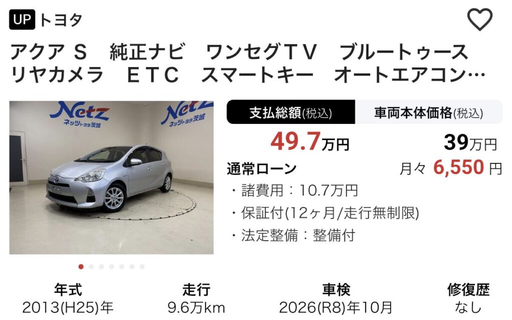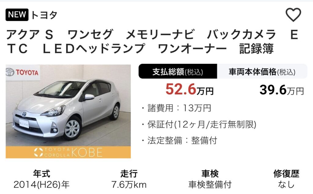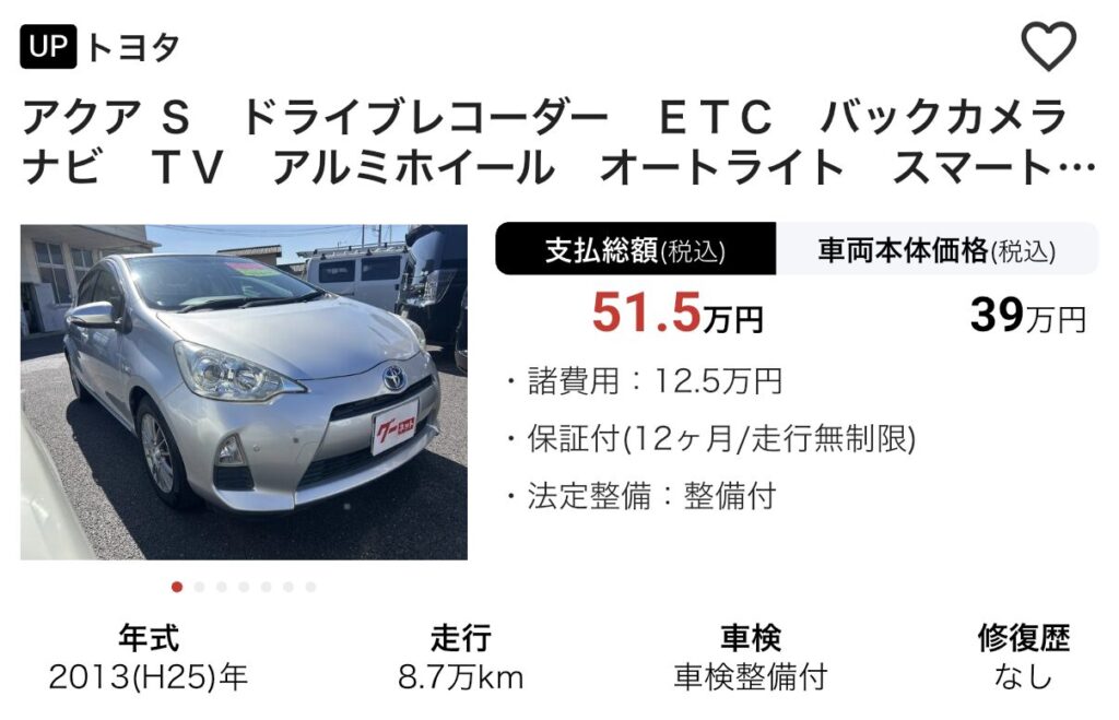 👉 アクアの中古車をチェックする