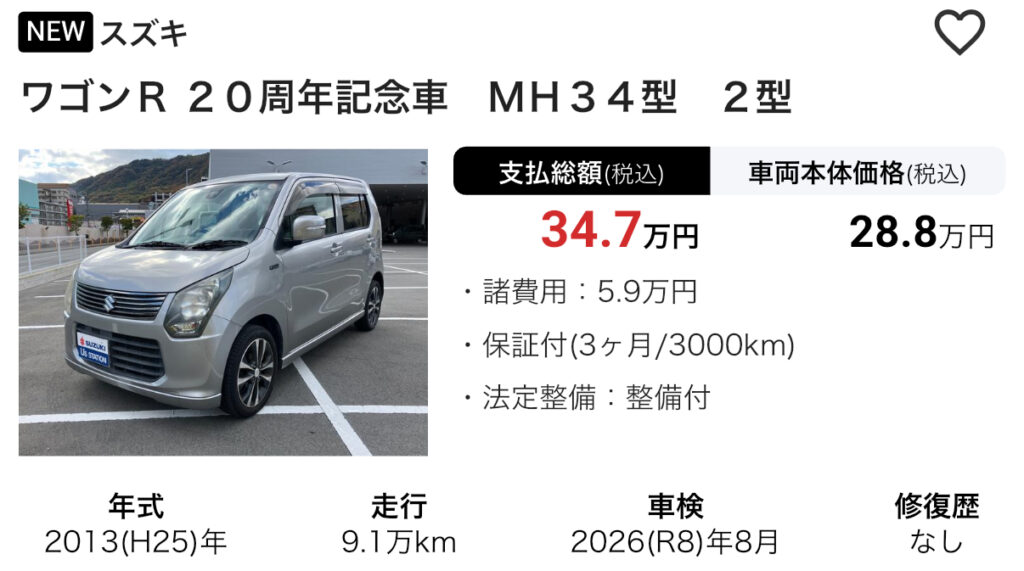 MH34S型ワゴンRの魅力は、なんといっても中古車価格の安さです。