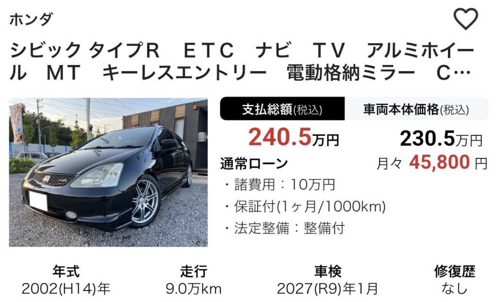 中古車市場では高値を維持しています。