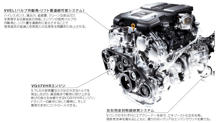 • エンジン:VQ37VHR(3.7L V6・NA)